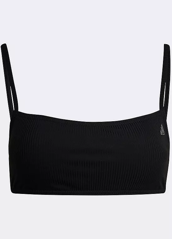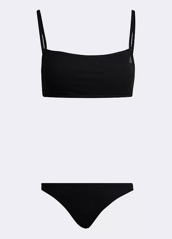 This bikini is inspired by a timeless classic and exudes elegant vibes at the beach or pool. The ribbed material is soft and comfortable while the top has slim straps and a medium support built-in bra. The removable pads also allow for an individual fit. The bikini bottoms have a medium-high waistband and round off the comfortable look. This product is part of our commitment against plastic waste and contains at least 60% recycled content.