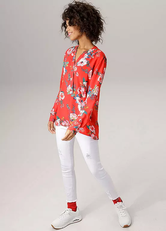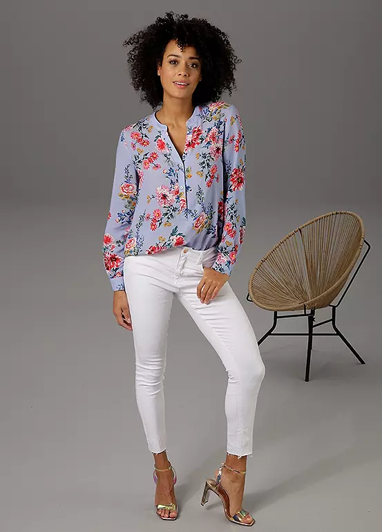 Gorgeous blouse in a stylish floral print. Features a V-neckline, as well as a button placket. Made from sustainable viscose.