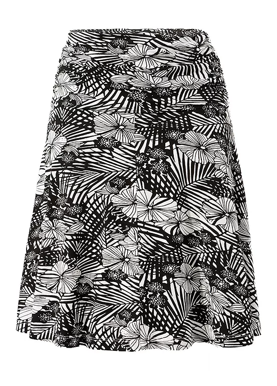 Adorable skirt in a slightly A-line style, that features a wide waistband with side gathers and has an all over trendy floral print.