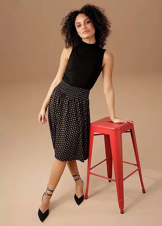 - Swinging slip skirt with dots