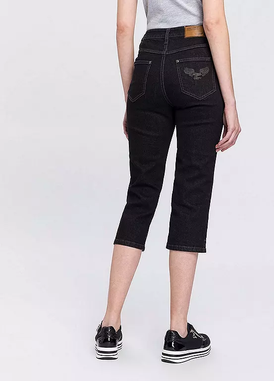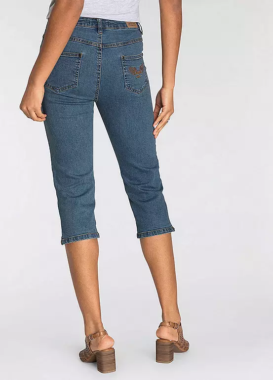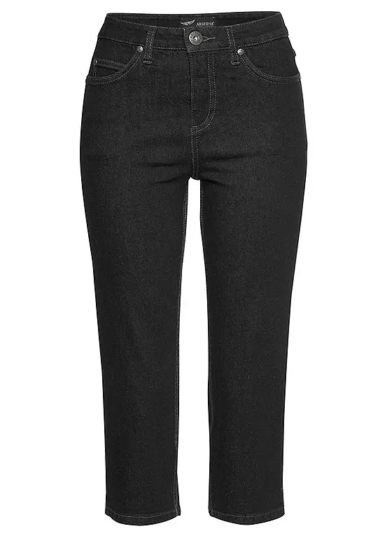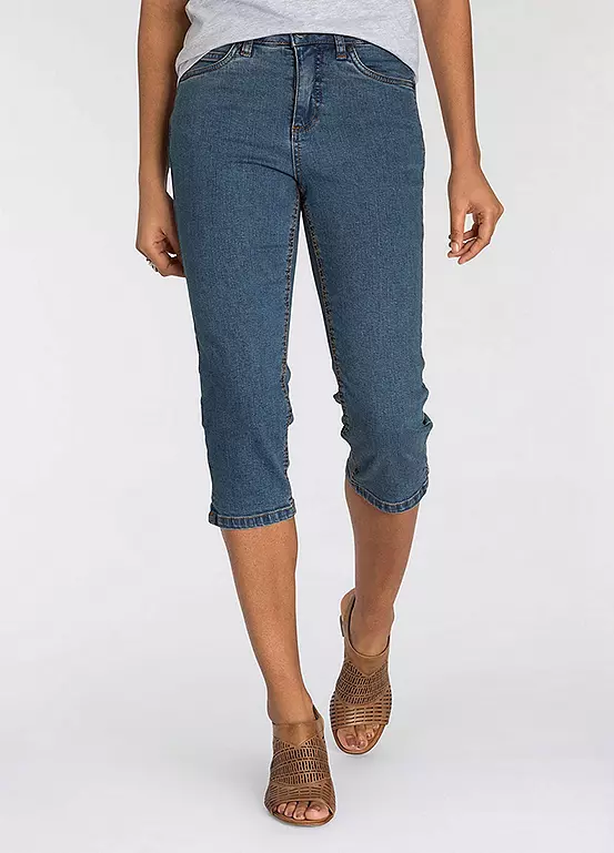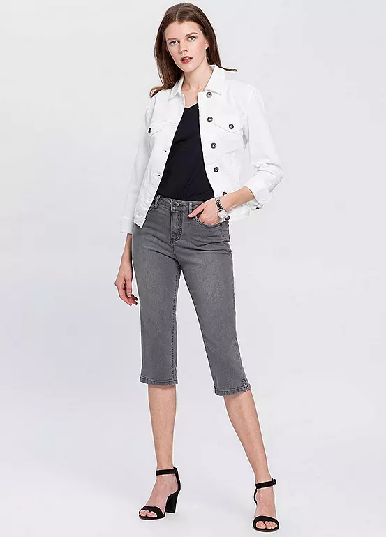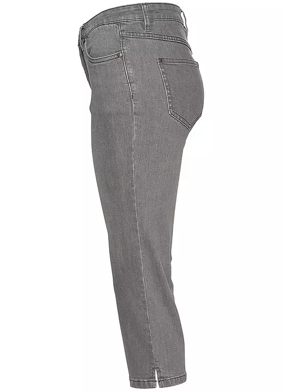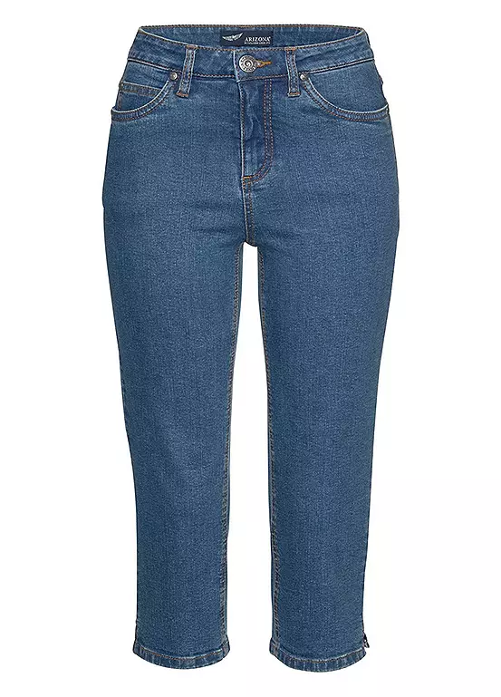Feminine 5-pocket style capri jeans that are designed with a comfortable tailored fit with a straight leg and small slit at the leg hems that creates a attractive look.