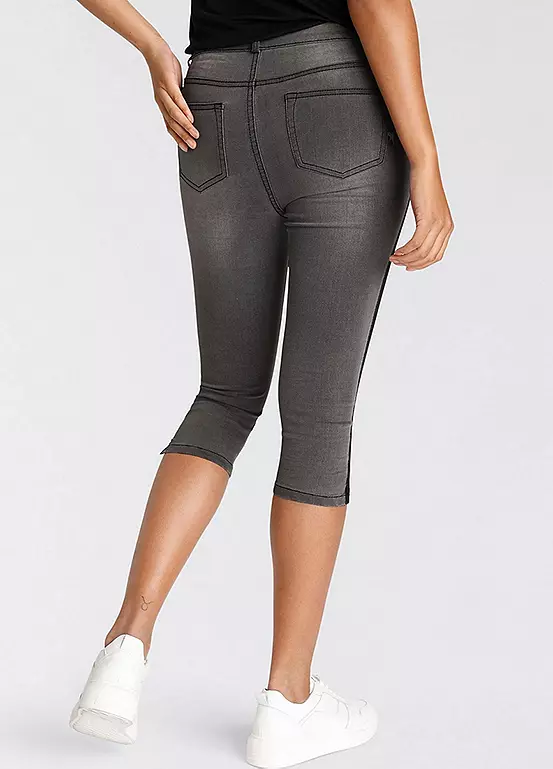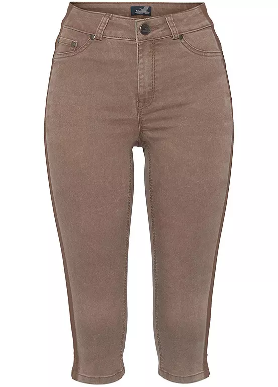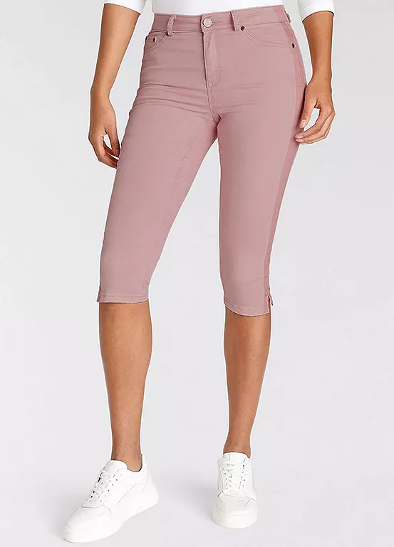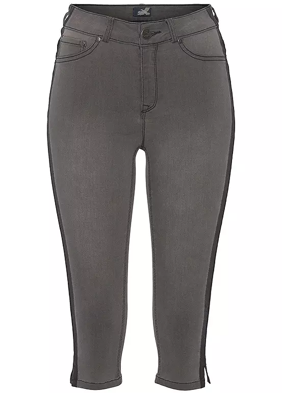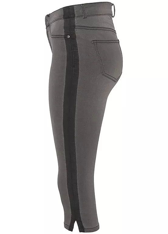 Versatile capri jeans with a fashionable stripe design on the side of the leg. Figure-hugging leg shape and high rise. The robust and stable denim quality makes the pants durable and long-lasting.