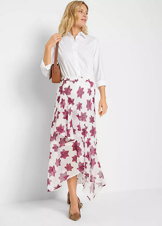 Chiffon shell skirt with a hanky hem.