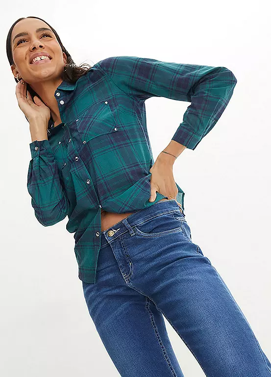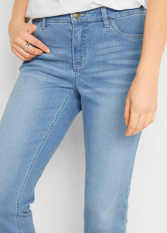 Stretchy denim jeans with a cropped leg.