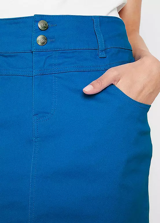 An eye-catching skirt that is in a straight cut, that features belt loops, side and back pockets, and fastens with two buttons and zip, which is in an all over polka dot print.