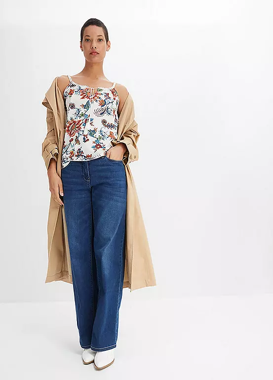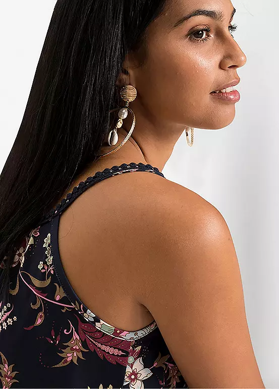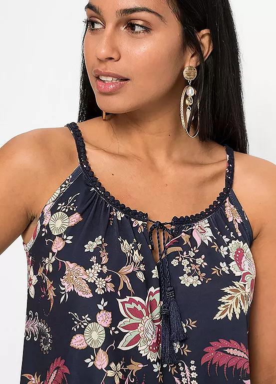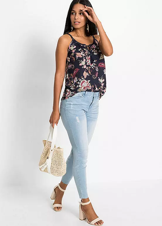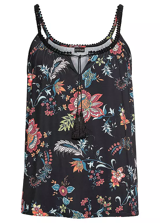 Beautiful floral printed jersey cami top with pretty embellished straps.