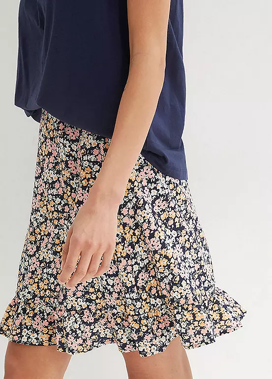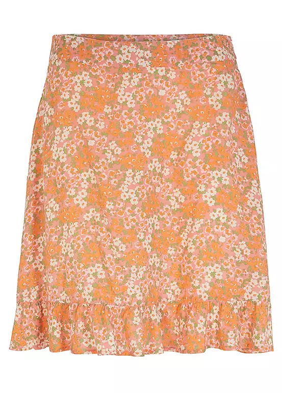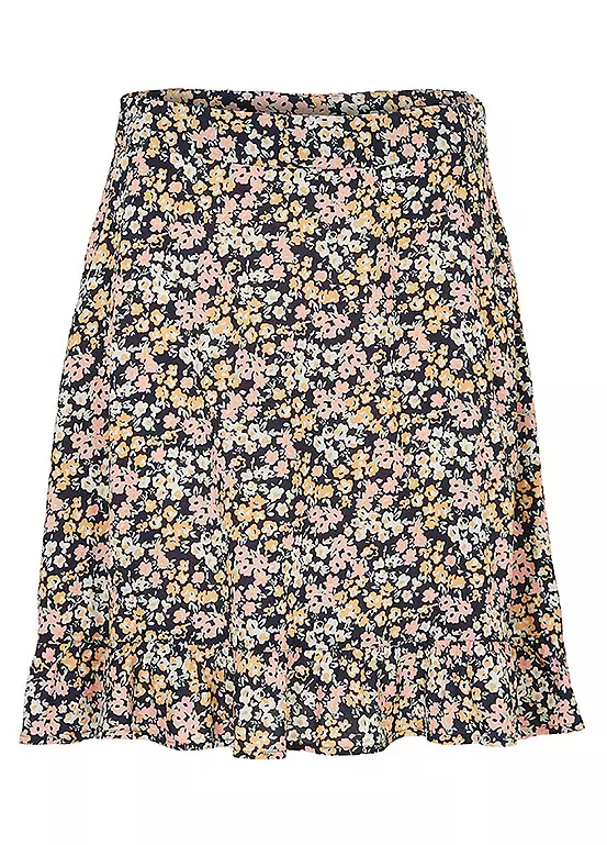 Millefleurs print skirt with a flounced hem.