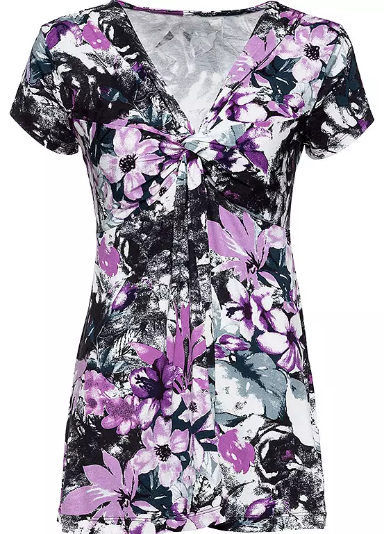 A versatile little top with a plunging V-neck and a clever knotted detail at the front to disguise any lumps or bumps around the tummy and waist!