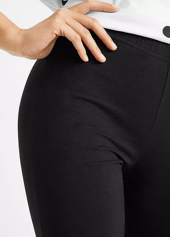 Two pairs of stretchy cotton leggings with a short leg.