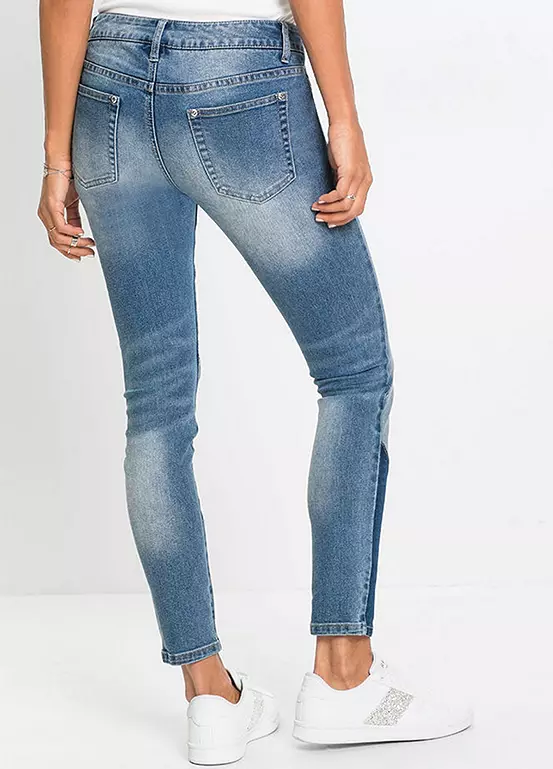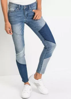 These stretchy pair of skinny jeans stand out thanks to their triangular patchwork pattern. With a tapered leg, zip and button fly and a low rise.