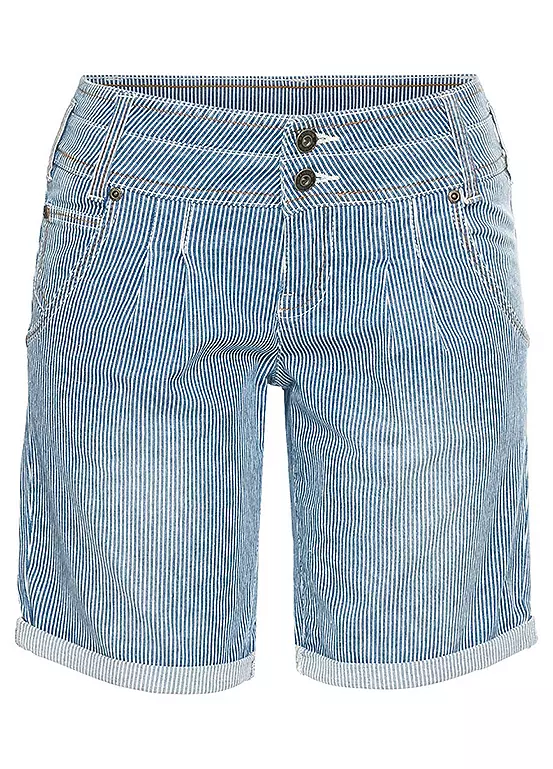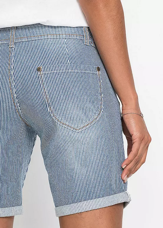 These stripy denim shorts come with turn-up hems, belt loops and side pockets.