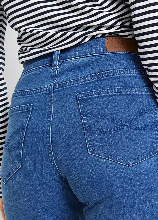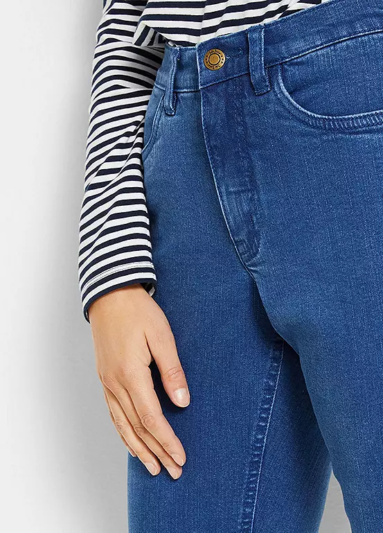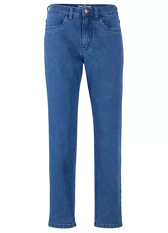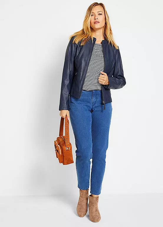 A pair of tapered mom jeans in organic cotton.