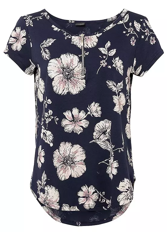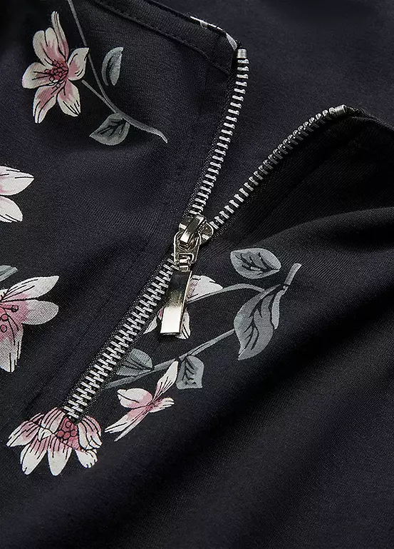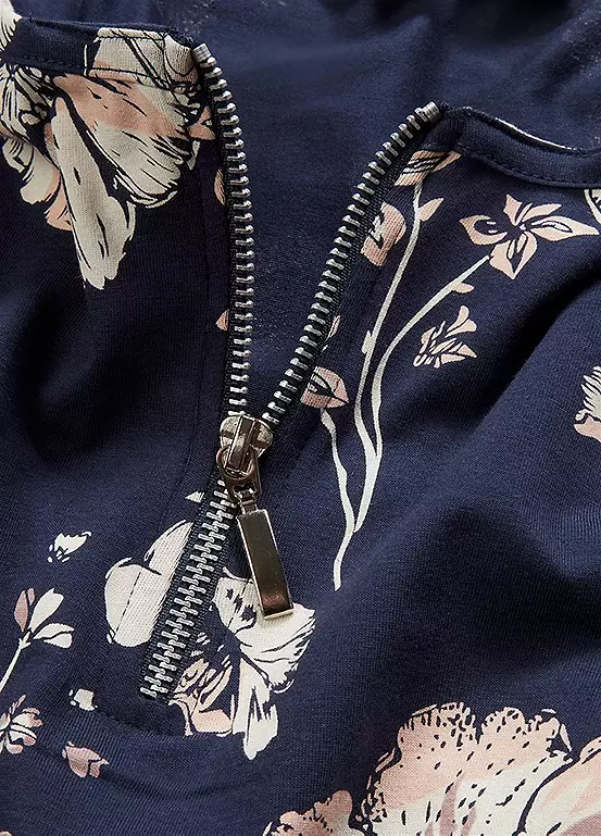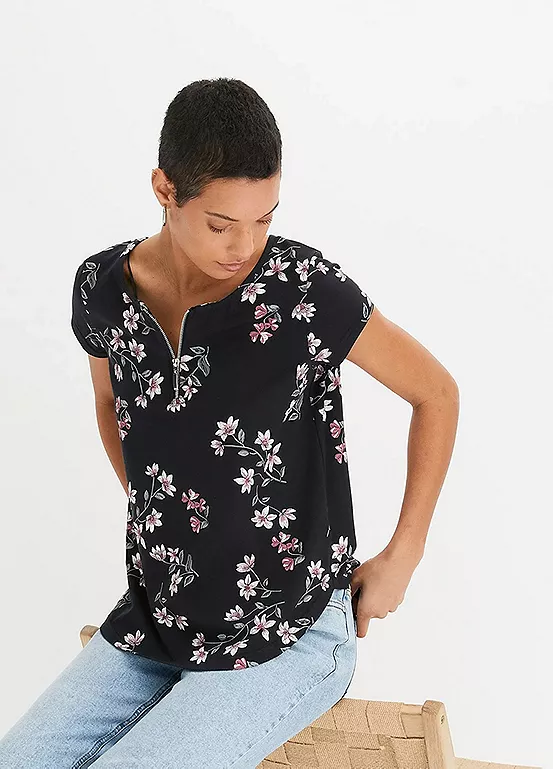 Floral print top with a zip at the collar.