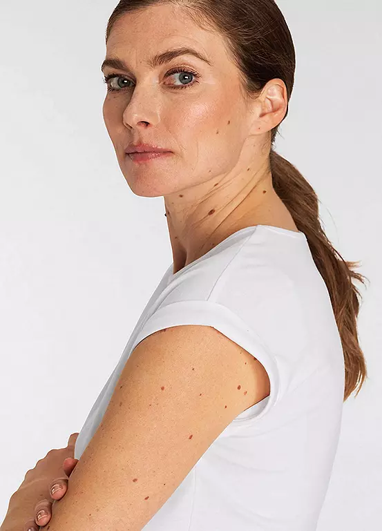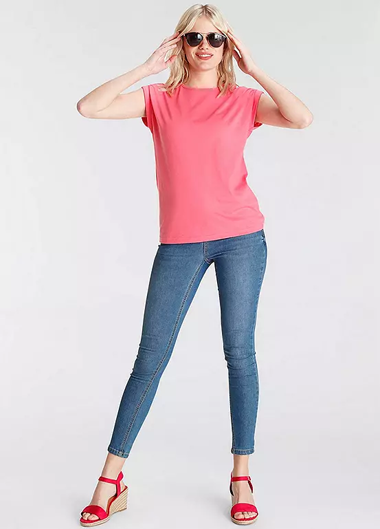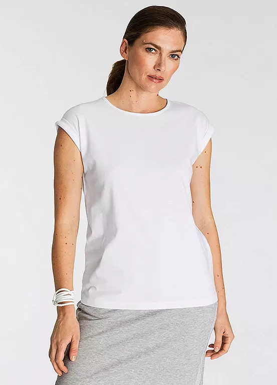 This t-shirt brings style and coolness to any look, as it’s in one striking colour and has round neck shirt with drop shoulders and extra-short, capped sleeves.