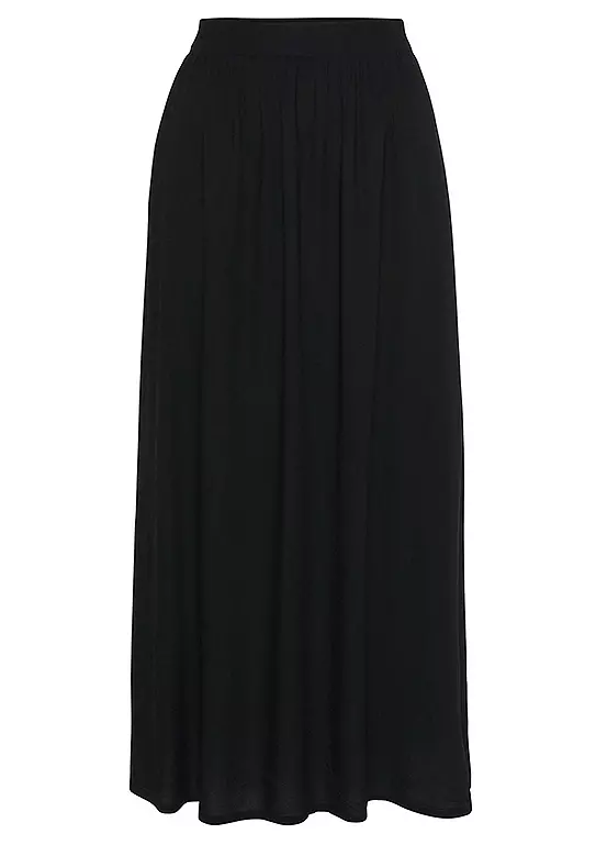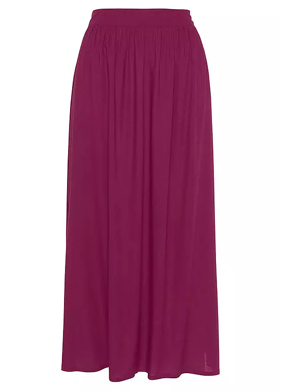 A plain maxi skirt with a smooth waistband at the front and an elasticated back. Finished with a long side slit and a straight hem, this piece is perfect for many occasions.