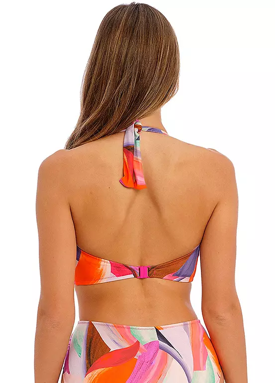 Inspired by the morning sunrise, Aguada Beach presents an exclusively designed watercolour print in tones of pinks and oranges. Made with Lycra® Xtra Life™. The Bandeau has lightly padded foam cups for support and a smooth rounded shape.