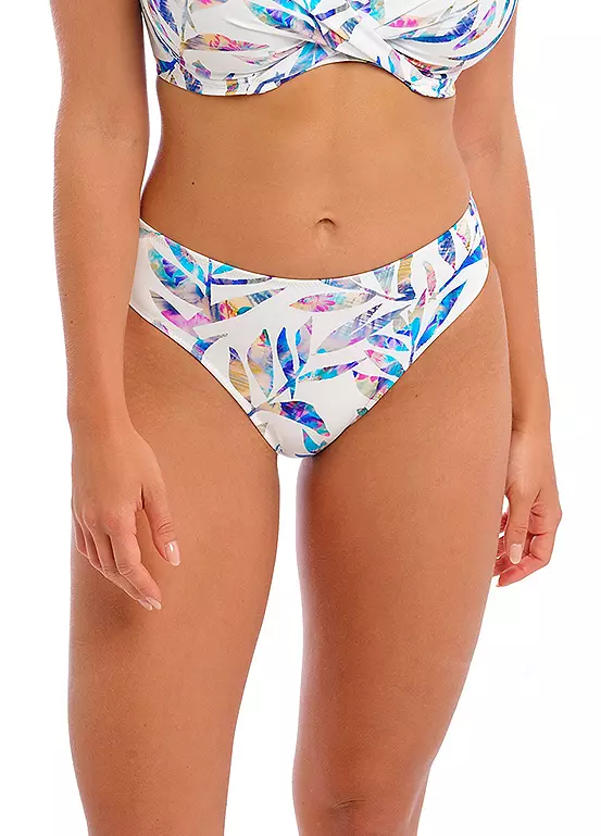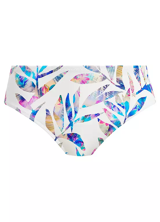 Calypso Harbour captures the true beauty of a tropical paradise with a multi coloured leaf print design in digital blues, silvery greens and highlights of violet. Made with Lycra® Extra Life™. The Bikini Brief offers medium coverage and fully lined. Pair with the matching bikini top or tankini.