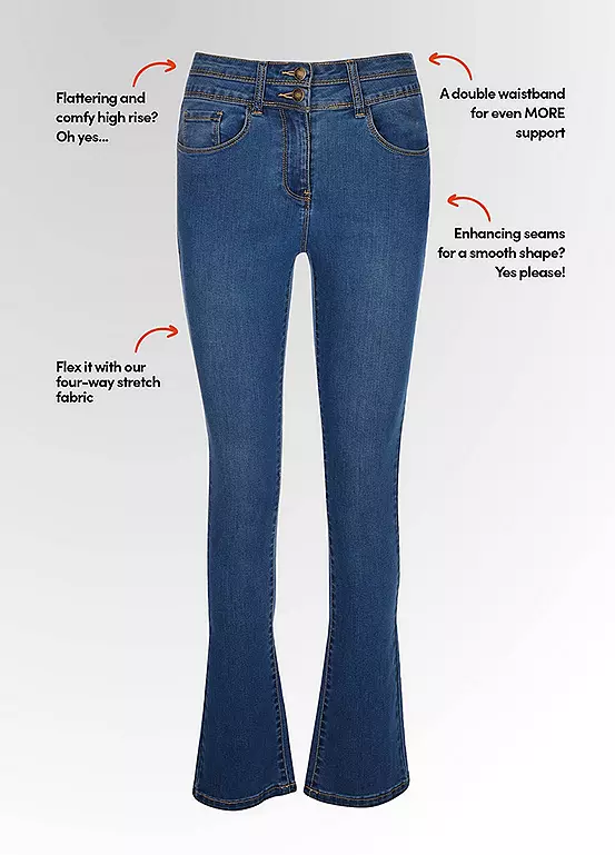 A great pair of jeans are a wardrobe staple, but our new ’Feel Good’ sculpting denim is one step better! We are proud to offer our lift and shape bootcut jeans which have been designed specially to give a wonderful fit. Special seaming details at the back aid additional lift, shape and smoothing to your bottom. All made possible by the 10.5oz stretch fabric. Available in three leg lengths, and multiple washes. Make sure you’ve got yours this season!