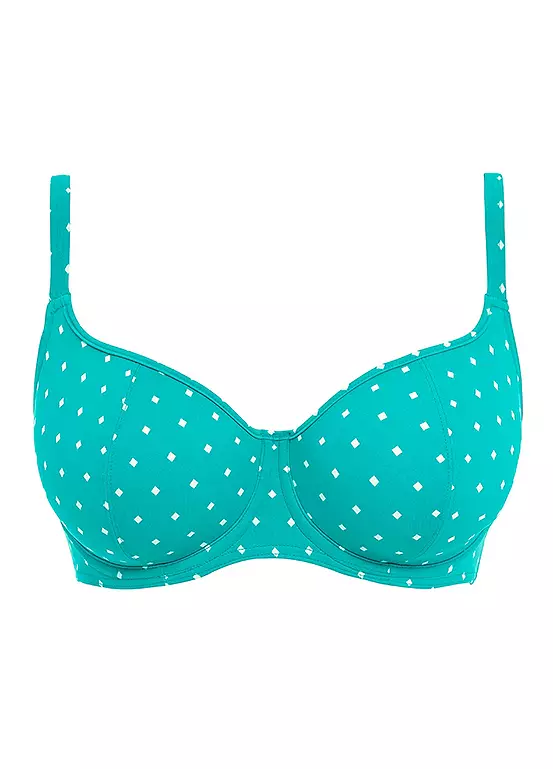 With a contemporary twist on the classic polka dot design, Jewel cove features a repeat white diamond print on contrast ground. Made with Lycra® Xtra Life™. The Underwire Sweetheart Bikini Top features lightly padded foam cups for support and a smooth rounded shape. Sweetheart neckline offers uplift and enhanced cleavage. Fixed fully adjustable shoulder straps. Pair with the matching bikini brief.