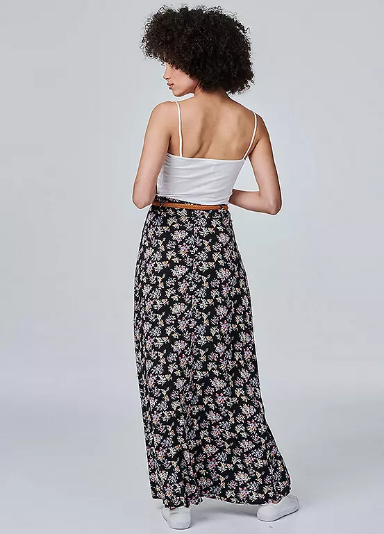 Add a go-to ankle length skirt to your warm weather wardrobe with this ditsy floral maxi. Made from 100% viscose, it has a removable belt, a high waist and an A-line silhouette. Pair with fresh white trainers and a denim jacket for an elevated weekend style.