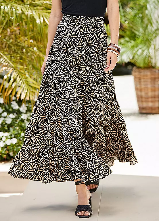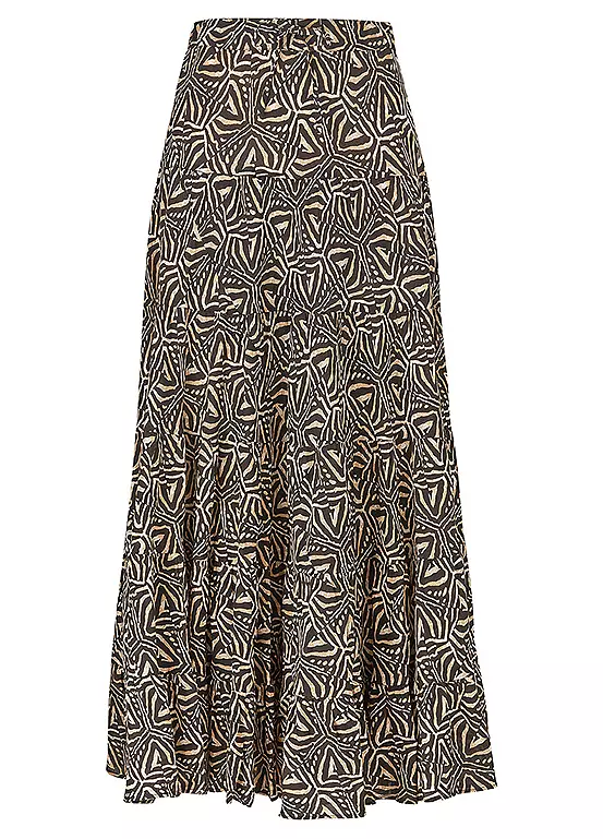 This abstract animal maxi skirt is made from a soft and fluid fabric. Easy to pull on with an elasticated waist, this style Is perfect to glam up with your favourite pair of wedges and our linen blend blazer!