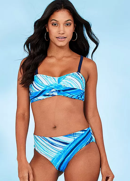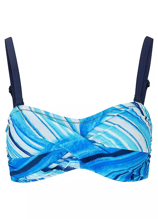 This gorgeous Bandeau wave printed bikini top will be your holiday favourite. This style perfectly flatters your bust to make you feel confident in your swimwear. Finished with a back clasp, an removable straps.