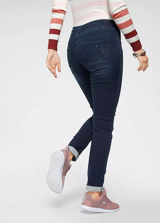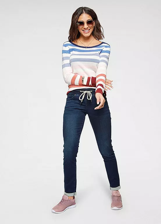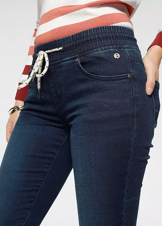 Providing a super comfortable everyday style, these lovely jeans are a must-have for your wardrobe. In a classic 5-pocket design and authentic used wash that are styled with an elasticated, drawstring waistband and are styled with rolled up leg cuffs.