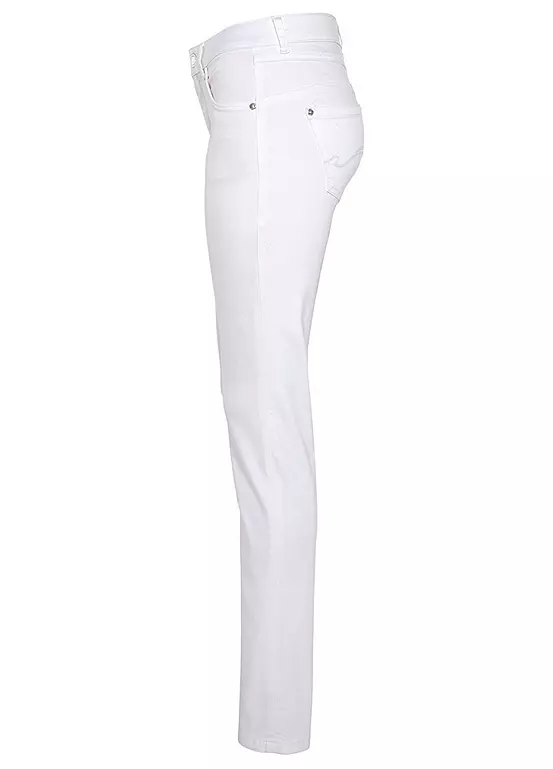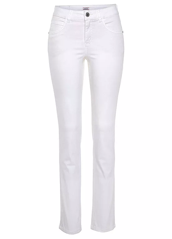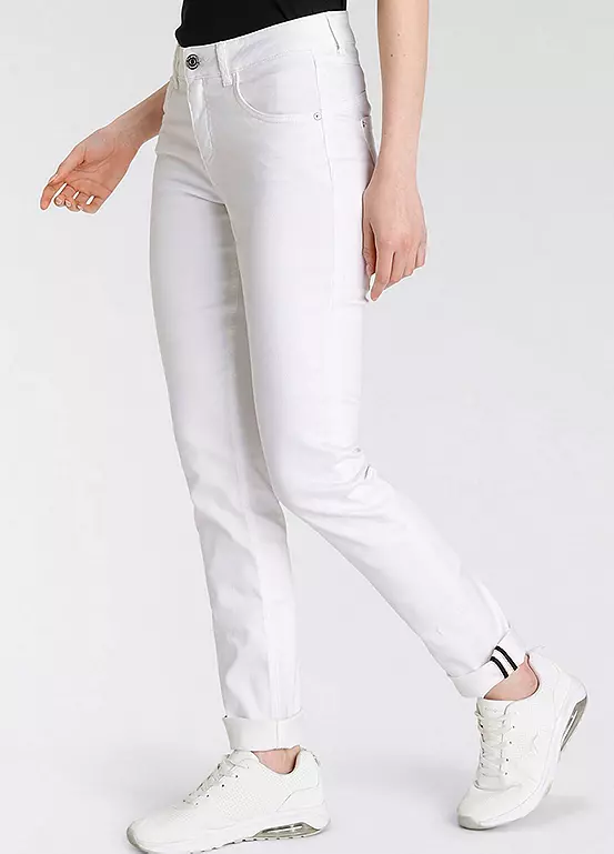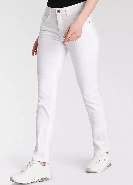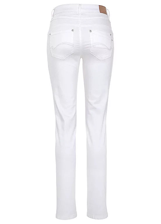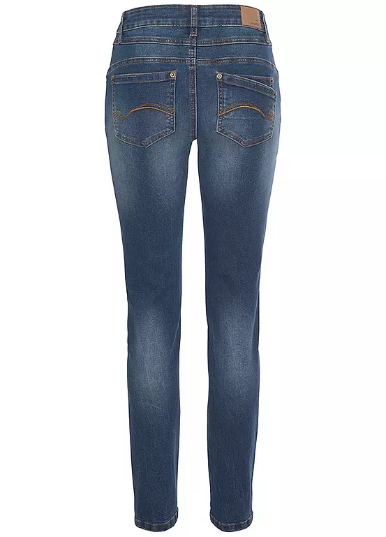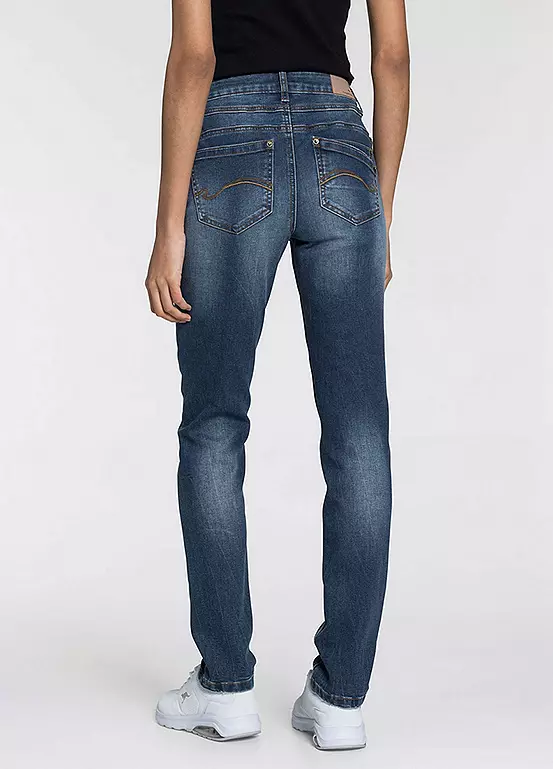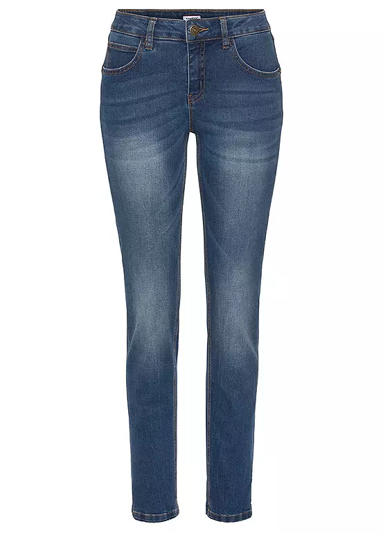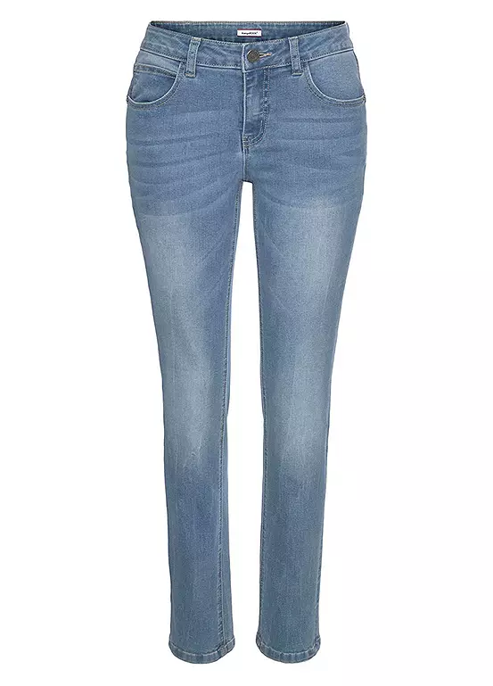 Comfortable five pocket high rise jeans in a relaxed fit with durable stretch denim for added comfort.