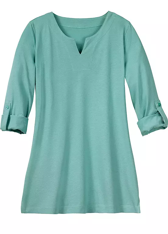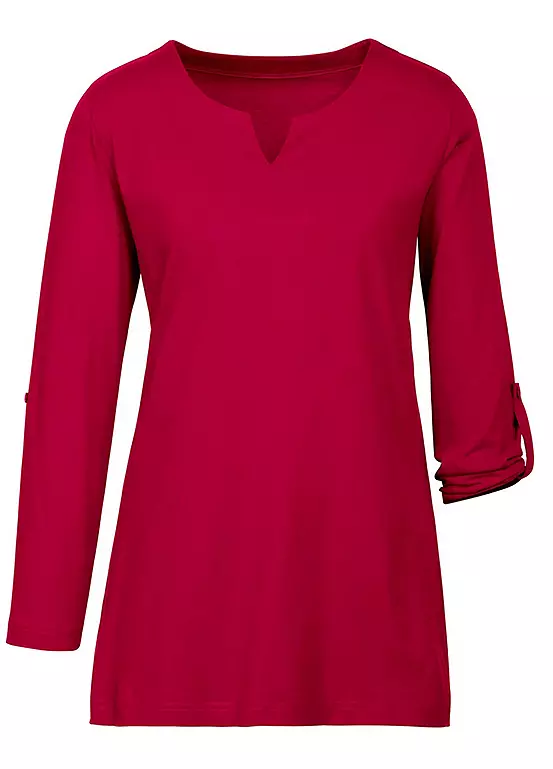 Perfect for mixing and matching with the rest of your casual wardrobe, this longline top boasts a chic notch neckline, as well as long sleeves that can be rolled up and fixed with a tab and button fastening.