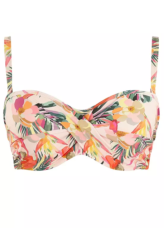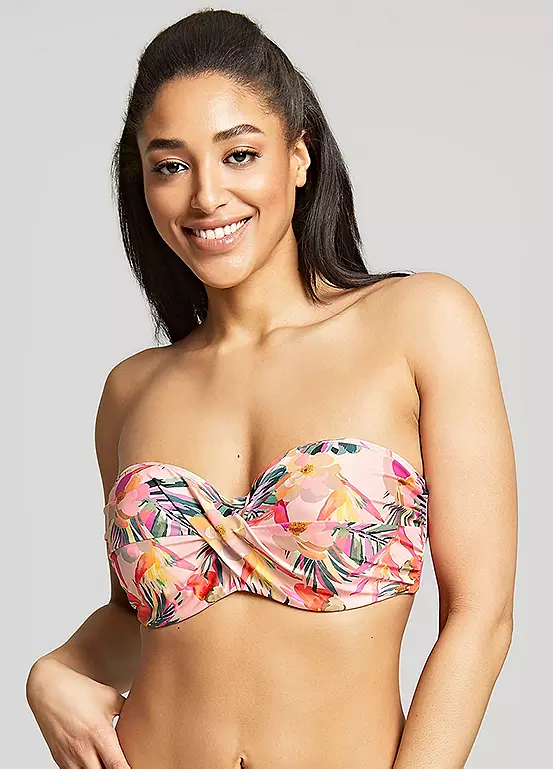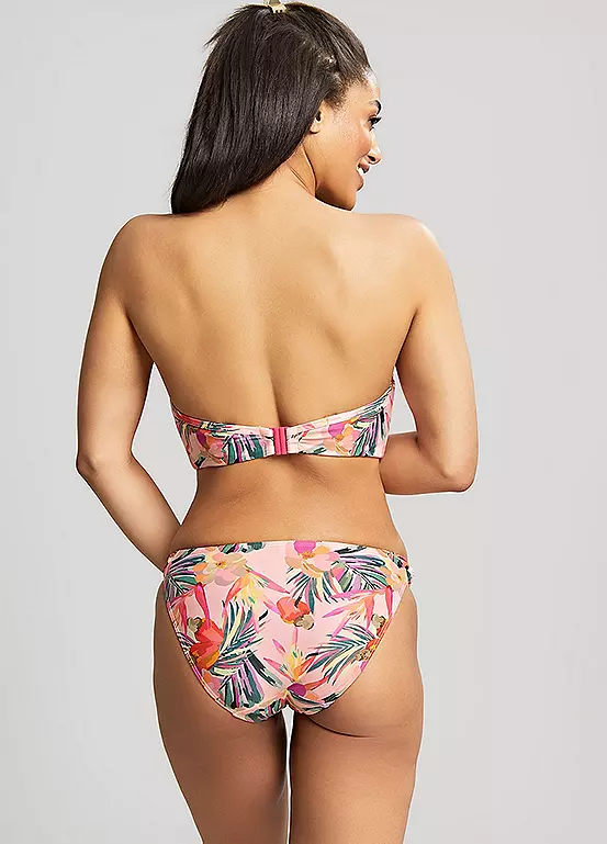 Adding a touch of tropical bliss to the range using a fresh summery Pink Tropical print accented with gold bead trims and tie detailing. With detachable straps to allow for versatile styling options, this range is perfect for soaking up the sun this summer! Padded cut and sew cups offer support and uplift when worn without straps whilst powermesh wings provide smooth firm comfort. Dolphin is a naturally soft charmeuse with a lightweight and soft hand feel. With high chlorine resistance and UV protection making it the perfect fabric for this swim range.