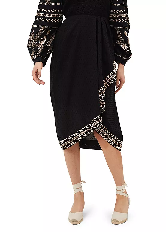 This cotton skirt is spring & summer must-have. Designed with black dobby details and an on-trend contrast print at the asymmetric hem wear this style with tops and sandals for an effortless outfit that’s perfect for staycations and warm weekends at home. Wear with our Debby shirred blouse for co-Ord style.