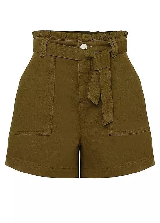 These Pollie cargo shorts are shaped with a high-rise, paperbag-style waist and handy side slip pockets, then secured with a self-tie waist belt. They’re crafted from organic cotton in a versatile khaki shade and are perfect to pair with all your spring/summer statement tops and blouses.
