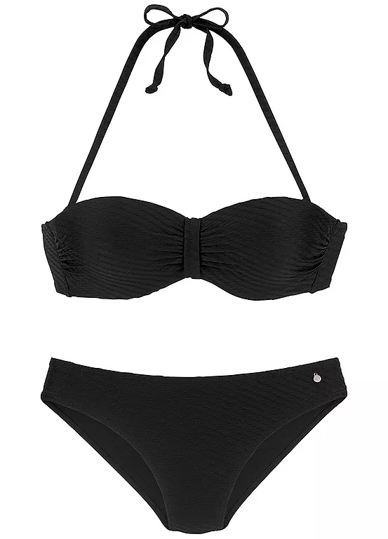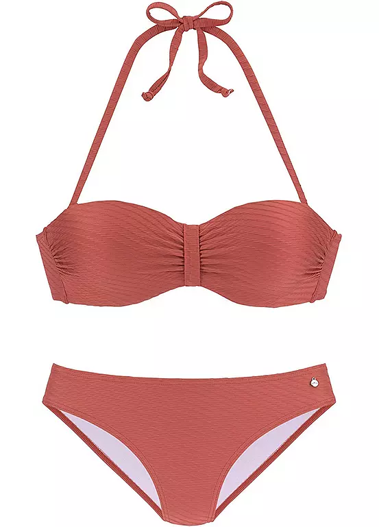 The underwired bandeau bikini from s.Oliver is a real-style classic. Plain coloured in design, it knows how to impress with its timeless look. If you take a closer look, the easy-care material has a subtle textured pattern. The padded cups have boning on the sides and the neck holder can be removed in no time for a streak-free tan. The swimwear two-piece looks really good under a white, translucent beach shirt.