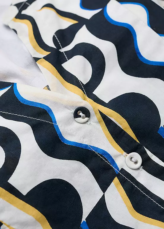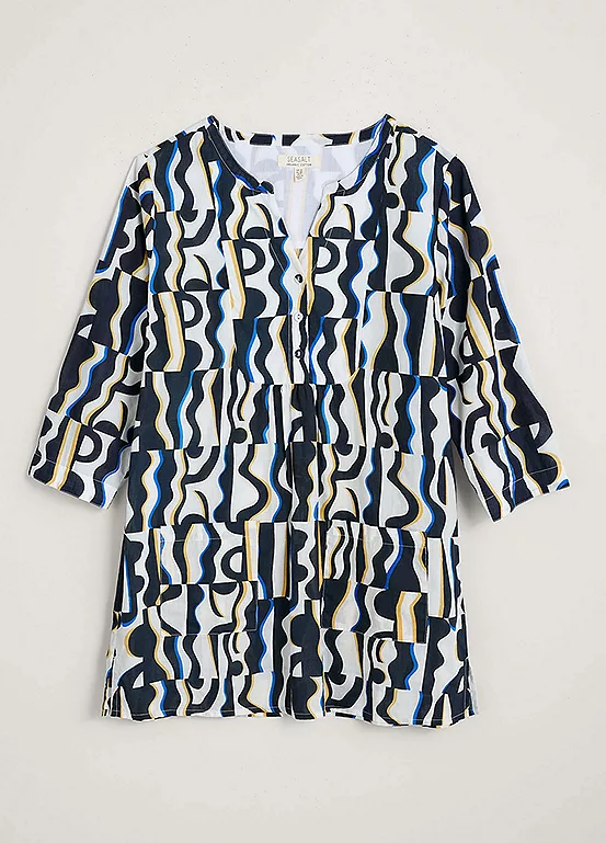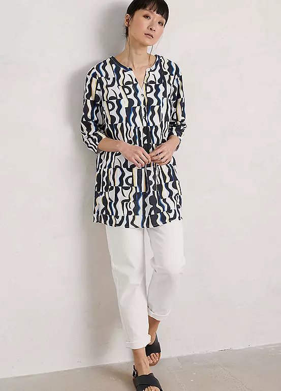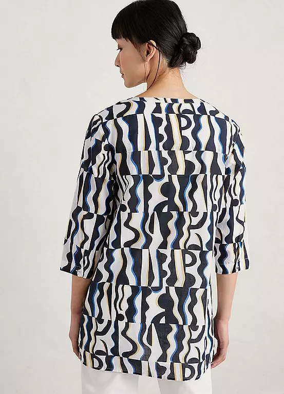 Loose fit cotton voile tunic with notch neck and three-quarter length sleeves.