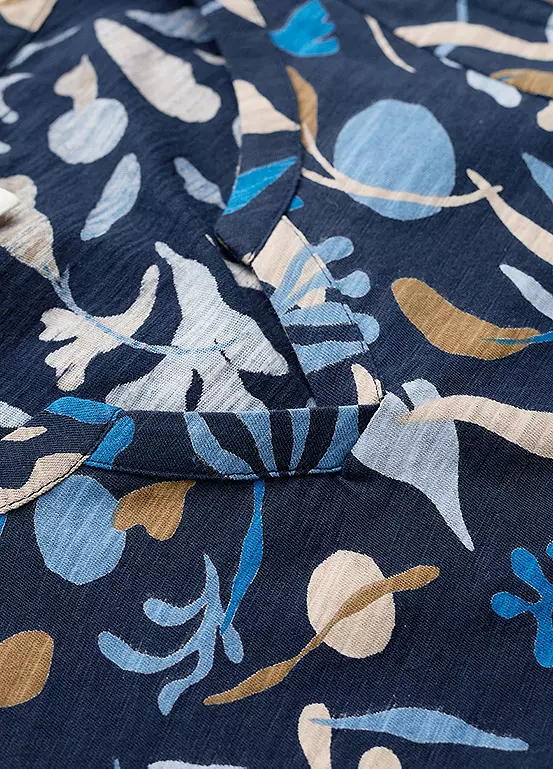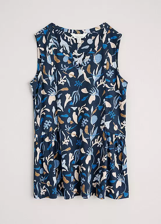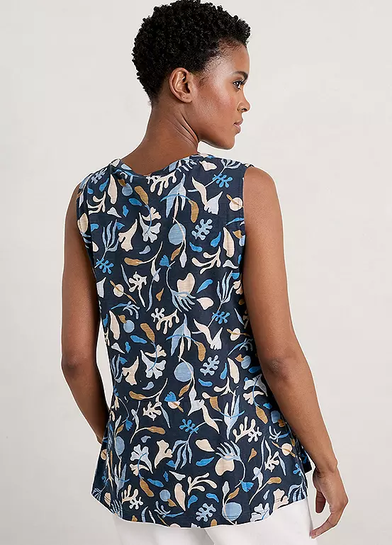 Organic cotton jersey vest with notch neckline, princess seams, and a unique Seasalt print.