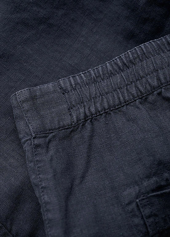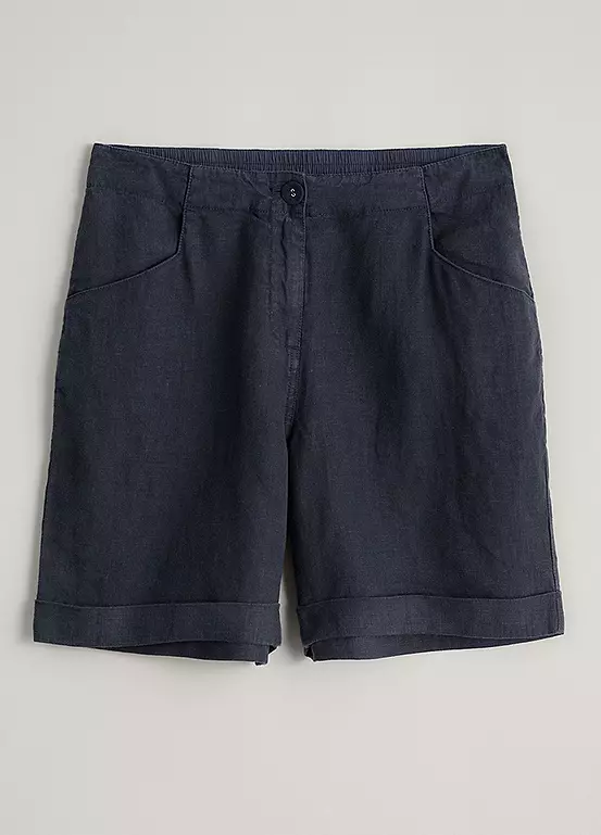 Easy-fitting linen shorts with fixed turn-ups, elasticated back waist and zip & amp; fly with button fastening.