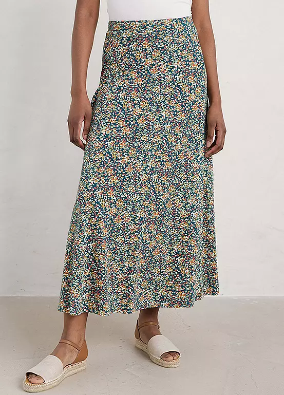 Long A-line jersey skirt, made with organic cotton with a unique Seasalt print.