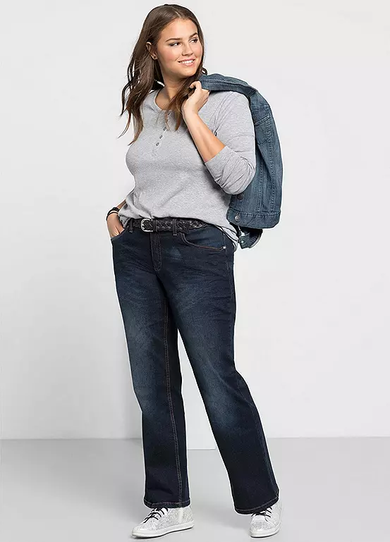 Stretch, slightly flared bootcut jeans in a classic 5 pocket style with lovely contrast stitching. In a fashionable used look for that vintage effect.