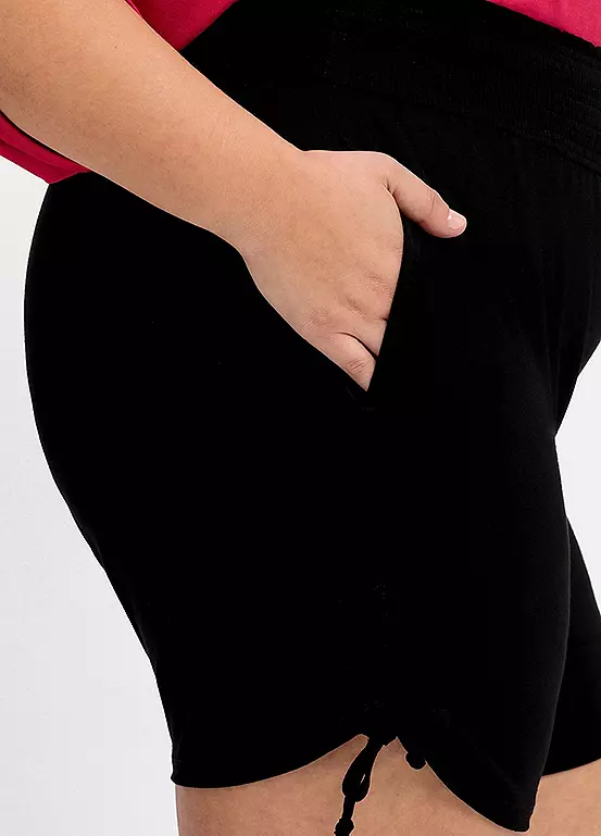 Due to the casual cut and the comfortable smocked waistband, the shorts are ideal for quickly pulling over your swimwear. There are two practical side pockets. The decorative ribbons on the side can be decoratively gathered and round off the look in a feminine way.