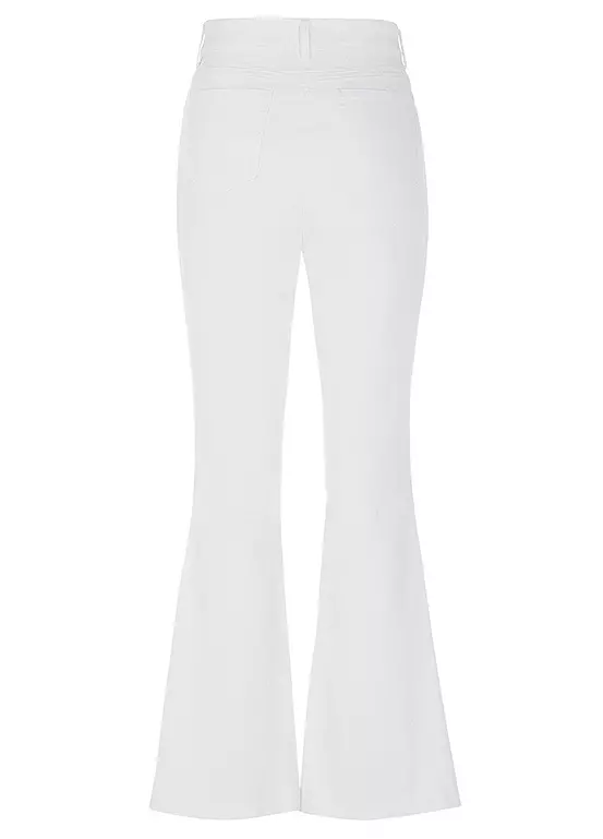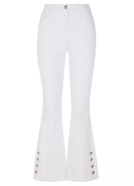 Great summer jean with kickflare detail and star embossed buttons on the hem to really elevate this look .