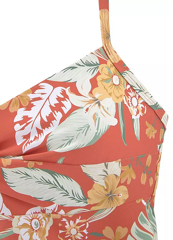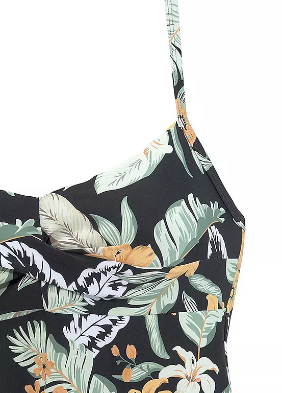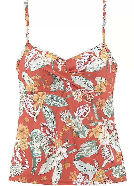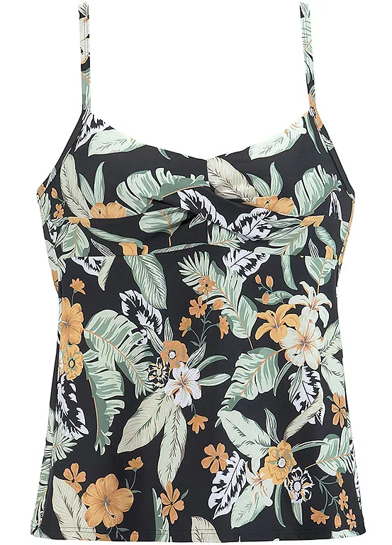 Fashionable underwired tankini top in a summery print. The tankini provides good support thanks to underbust rubber. Designed with adjustable straps and gathering in the chest area. Perfect for mixing and matching.