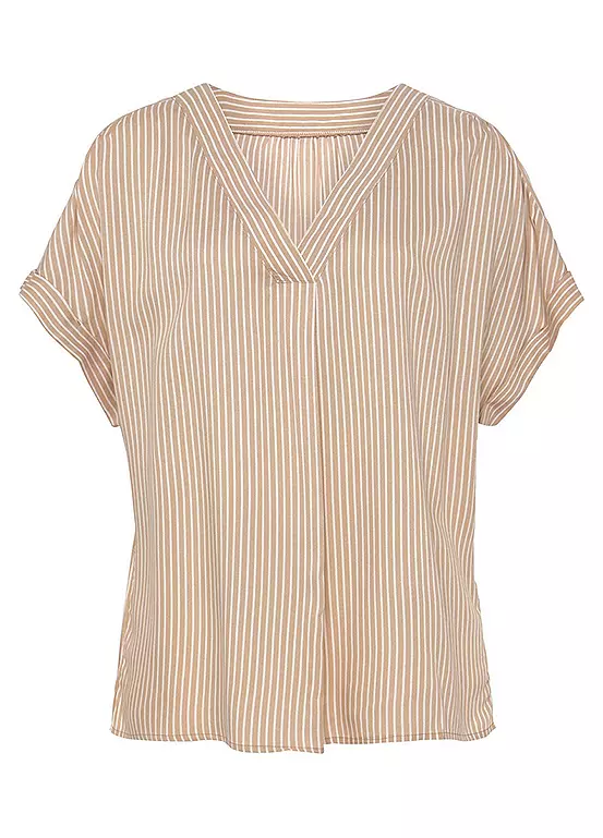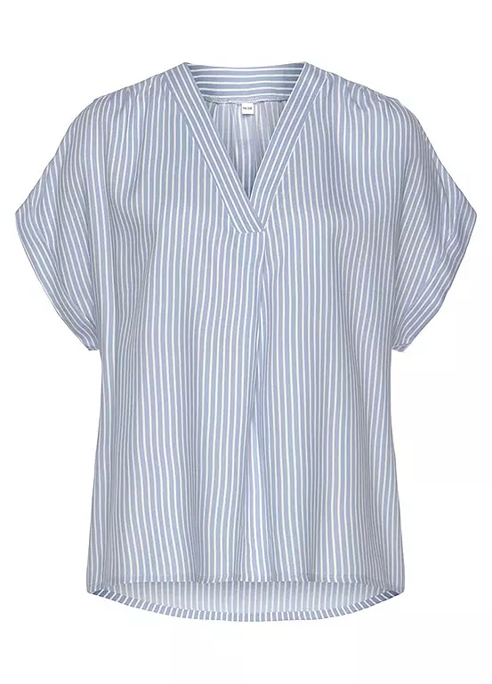 This short-sleeved blouse attracts attention with its deep v-neckline and short sleeves with cuff. The box pleat on the front support the stylish look. The rounded hem is hidden at the back. The modern cut and the flowing viscose fabric ensure great comfort and a wide range of styling options. Wherever you wear it, wear it with confidence.