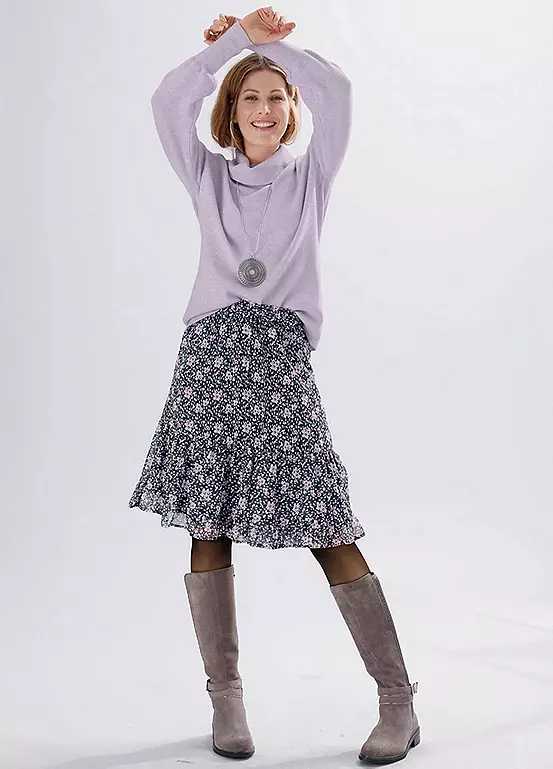 Printed skirt in floral pattern on flowing georgette fabric. Comfy slip-on design with fully elasticated waistband, drawstring and tie belt, finished with ruffles at hem for a playful look. With gentle, opaque viscose lining.