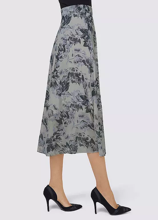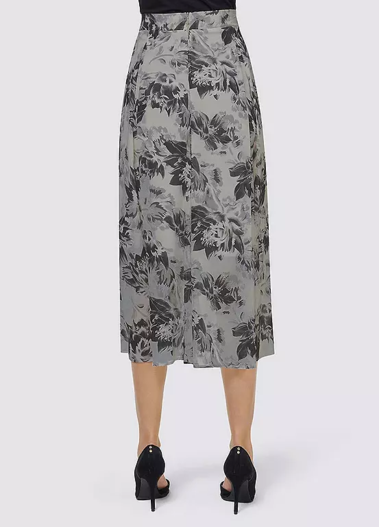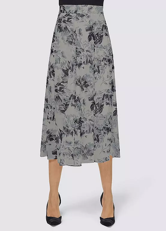 This wide skirt with striking pleats impresses with its feminine silhouette and plenty of ease of movement. Elasticated, wide waistband with seamless rear zip. In contrasting floral print. Elasticated lining.